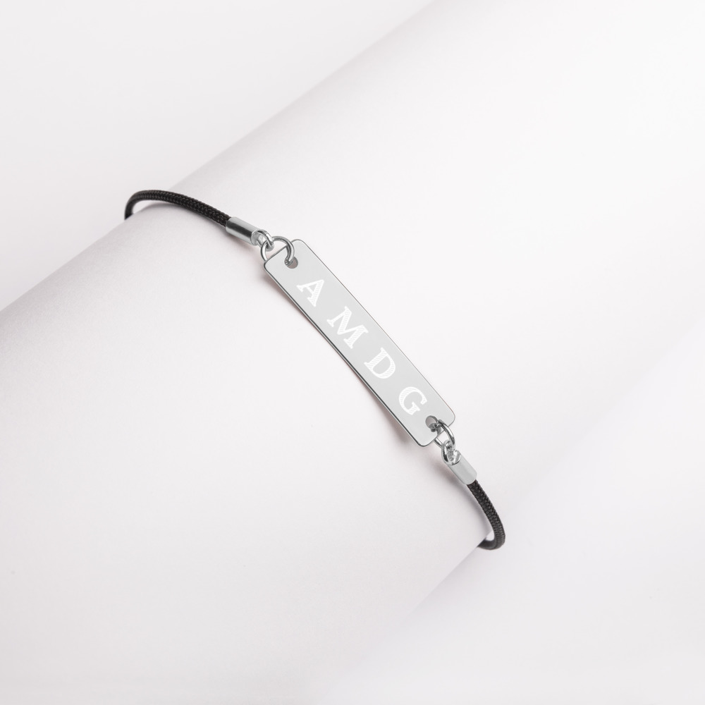 AMDG - Engraved Silver Bar String Bracelet